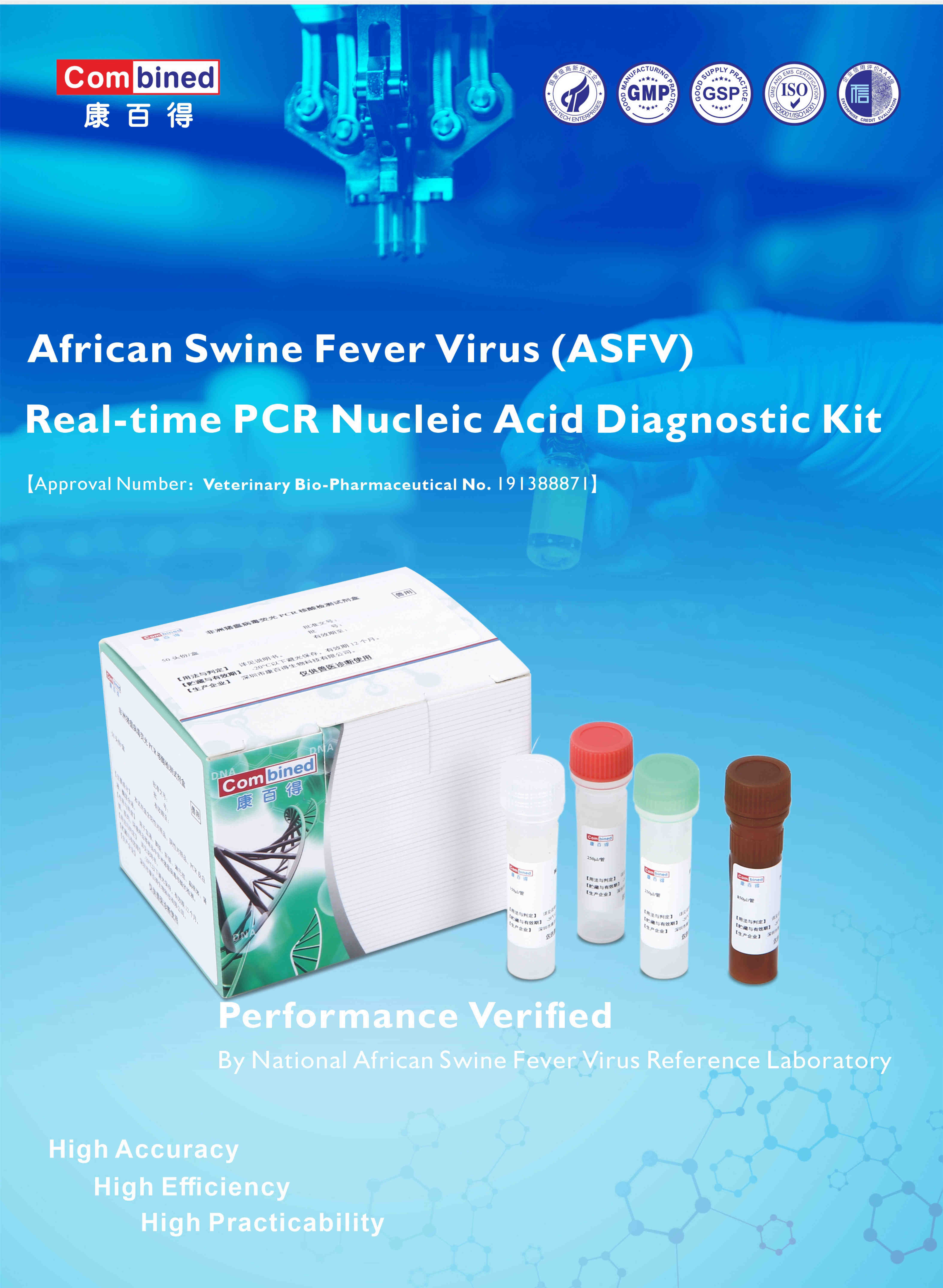 African Swine fever virus(ASFV)real-time PCR Test Kit 【Approval Number:Veterinary Bio-Pharmaceutical No.191388871】 |