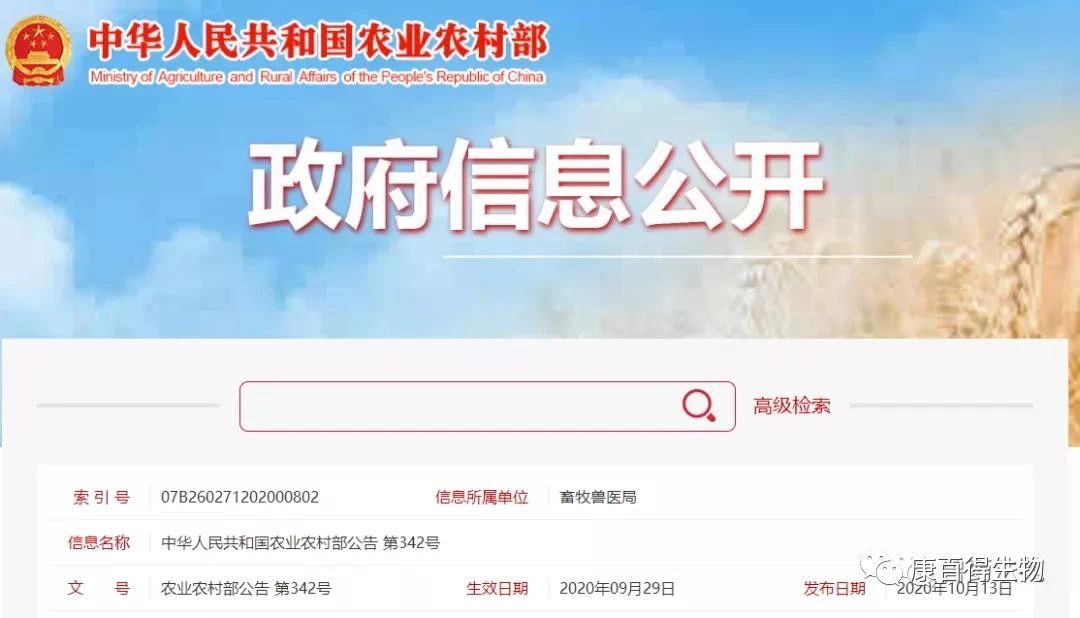 中華人民共和國農(nóng)業(yè)農(nóng)村部公告 第342號